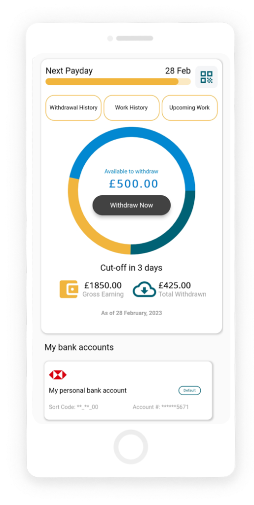 - Totally safe and secure way of accessing earned wages.